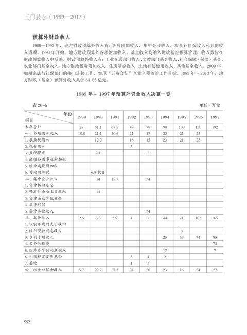 1989—1997 年,地方财政预算外收入有:各项附加收入、集中企业收入、粮食补偿金收入和其他收