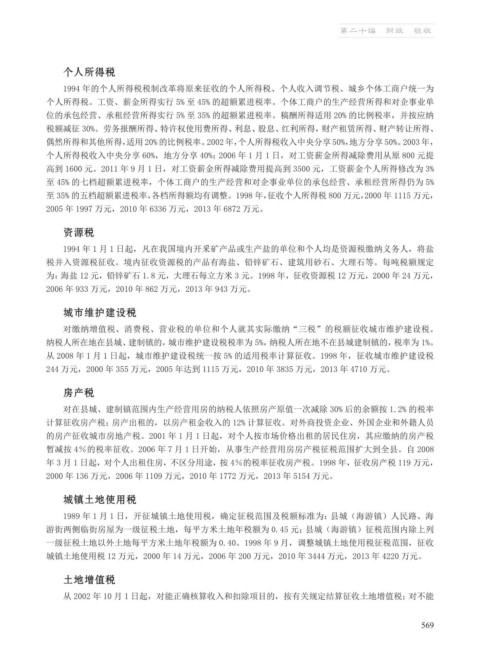 为:海盐 12 元,铅锌矿石 1.8 元,大理石每立方米 3 元。1998 年,征收资源税 12 万元,2000 年 24 万元,