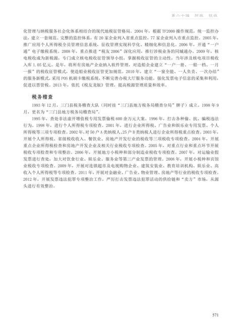 税收专项检查和专项整治。2006 年,开展地方小税种和部分制造业税收专项检查。2007 年,对运输业假