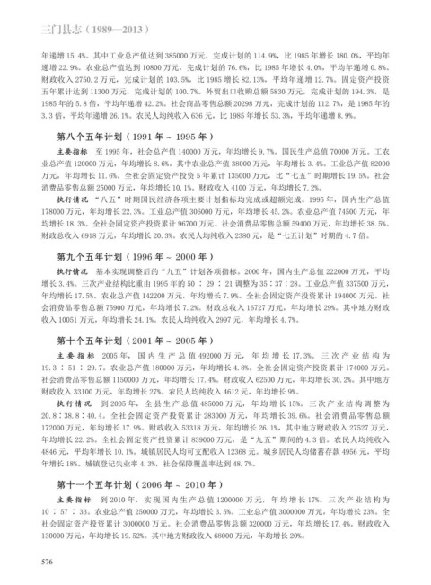 财政总收入 6918 万元,年均增长 20.3%。农民人均纯收入 2380 元,是“七五计划”时期的 4.7 倍。