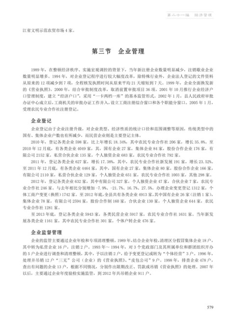 2010 年,登记各类企业 598 家,比上年增长 18.34%,其中农民专业合作社 206 家,增长 35.8%。至