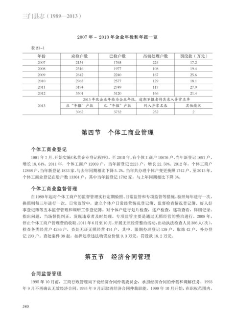 1991 年 7 月,开始实施《私营企业登记程序》。至 2010 年,有个体工商户 10676 户,当年新登记 1697 户,