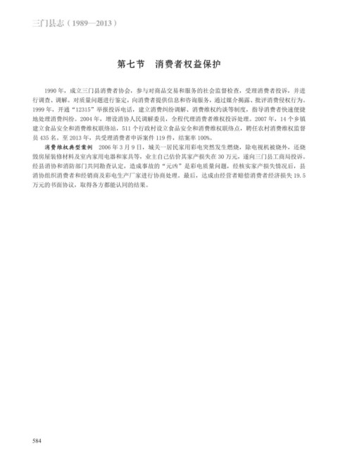 1990 年,成立三门县消费者协会,参与对商品交易和服务的社会监督检查,受理消费者投诉,并进