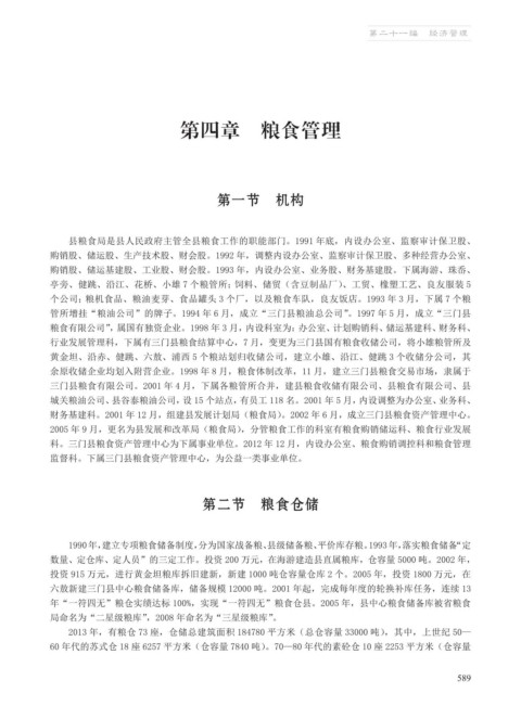 科。三门县粮食资产管理中心为下属事业单位。2012 年 12 月,内设办公室、粮食购销调控科和粮食管理