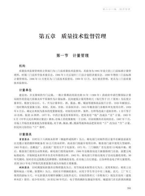 建县初,并无量制的专门记载。一般计量都沿用清光绪 34 年(1908 年)清政府申请巴黎国际计量