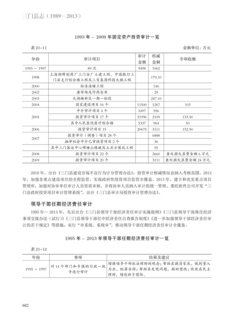 1993 年~ 2009 年固定资产投资审计一览
