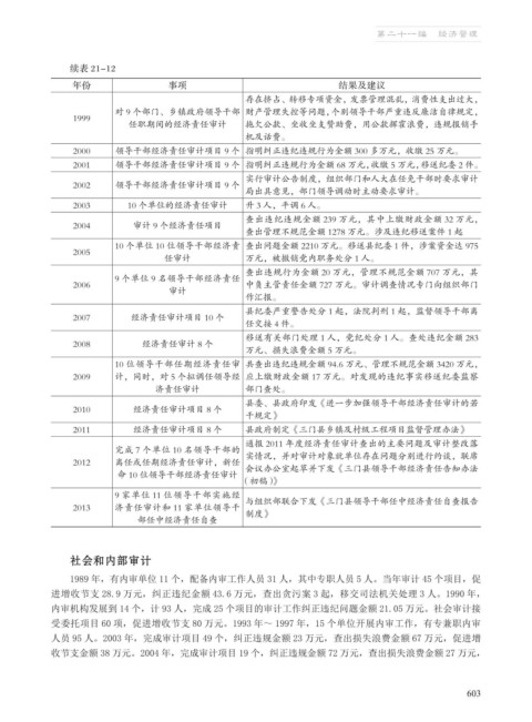 内审机构发展到 14 个,计 93 人,完成 25 个项目的审计工作纠正违纪问题金额 21.05 万元。社会审计接