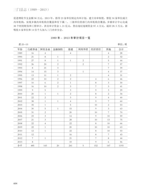 1989 年~ 2013 年审计项目一览