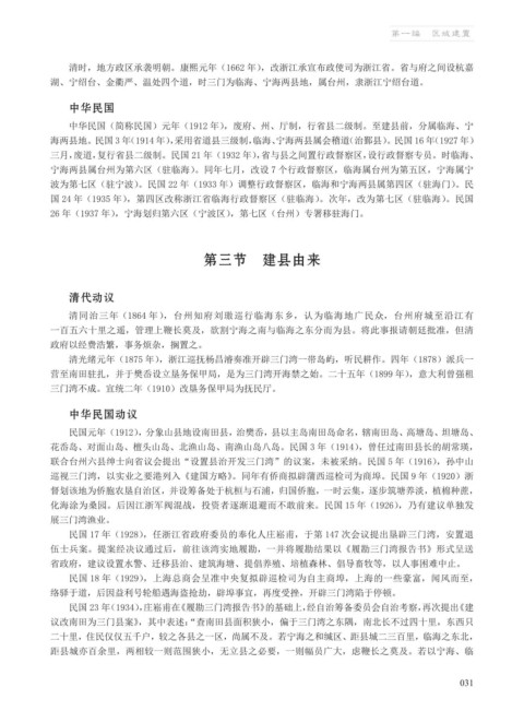 中华民国(简称民国)元年(1912 年),废府、州、厅制,行省县二级制。至建县前,分属临海、宁
