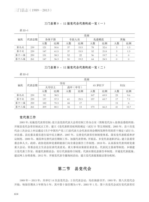 三门县第 9 ~ 12 届党代会代表构成一览(二)