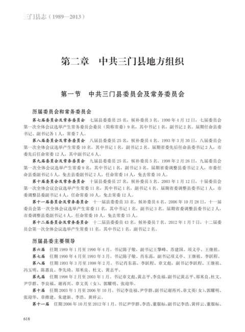 第九届委员会及常务委员会 九届县委委员 25 名,候补委员 5 名。1998 年 2 月 26 日,九届委员会