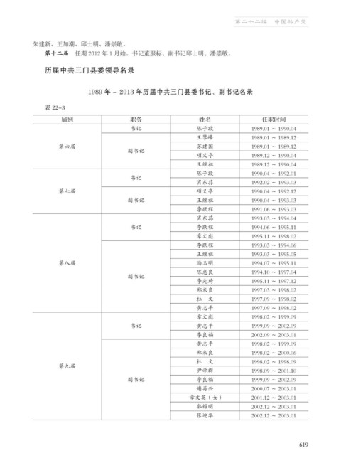 1989 年~ 2013 年历届中共三门县委书记、副书记名录