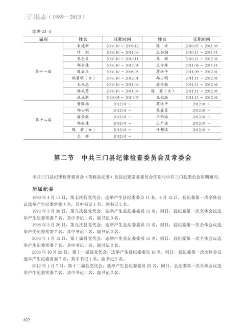第二节 中共三门县纪律检查委员会及常委会
