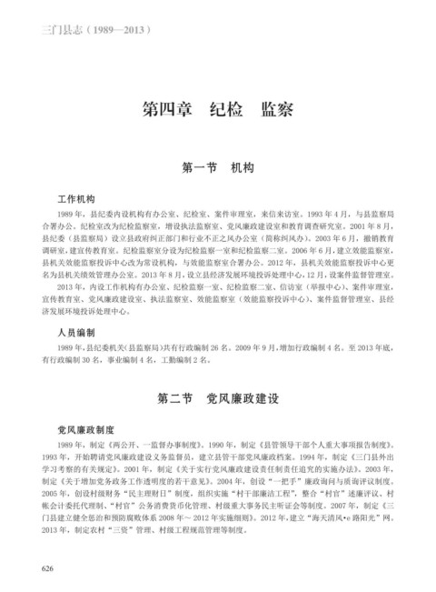 1989 年,县纪委机关(县监察局)共有行政编制 26 名。2009 年 9 月,增加行政编制 4 名。至 2013 年底,