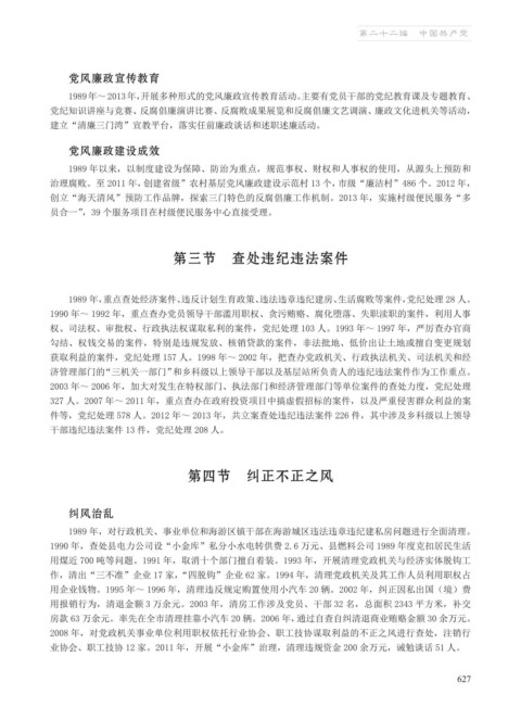 件等,党纪处理 578 人。2012 年~ 2013 年,共立案查处违纪违法案件 226 件,其中涉及乡科级以上领导