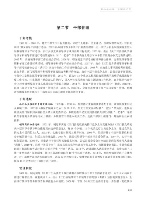 期和年度工作目标承诺制、领导班子和领导干部实绩公示制。2007 年,出台《三门县乡镇领导班子和领