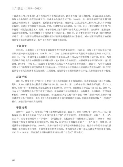 管理。2010 年,印发《三门县县管干部考察人选报告个人有关事项暂行办法》。2013 年,与审计局联合