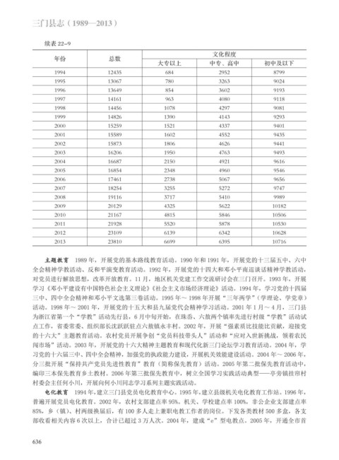主题教育 1989 年,开展党的基本路线教育活动。1990 年和 1991 年,开展党的十三届五中、六中
