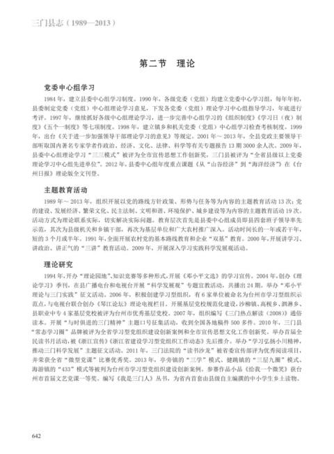 年,出台《关于进一步加强领导干部理论学习的意见》等规定。2001 年~ 2013 年,全县党政主要领导干