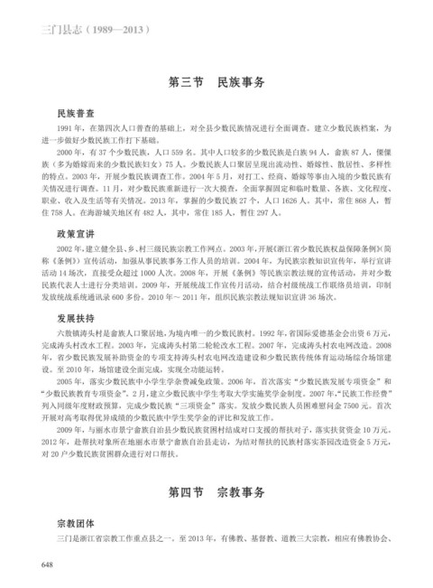 2002 年,建立健全县、乡、村三级民族宗教工作网点。2003 年,开展《浙江省少数民族权益保障条例》(简