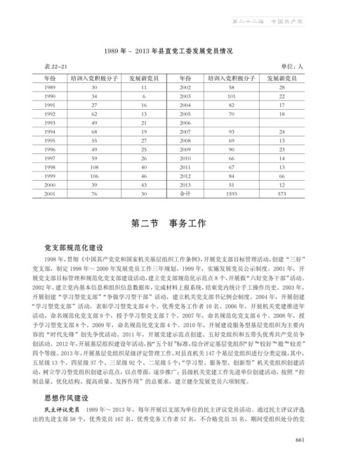 党支部,制定 1998 年~ 2000 年发展党员工作三年规划。1999 年,实施发展党员公示制度。2001 年,开