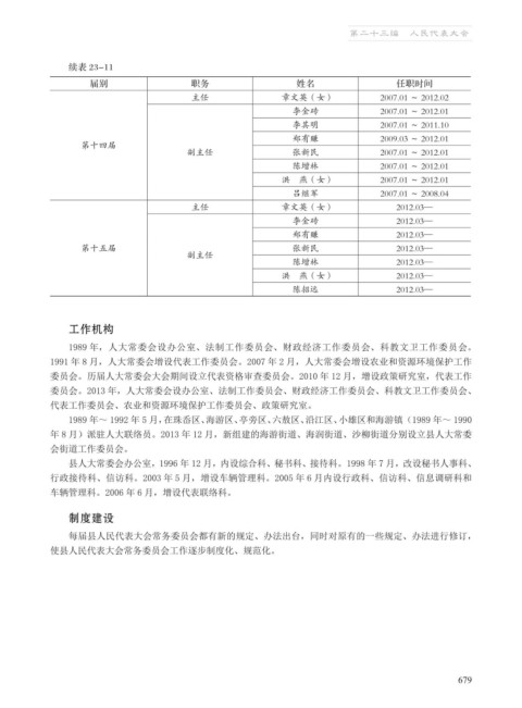 1989 年,人大常委会设办公室、法制工作委员会、财政经济工作委员会、科教文卫工作委员会。