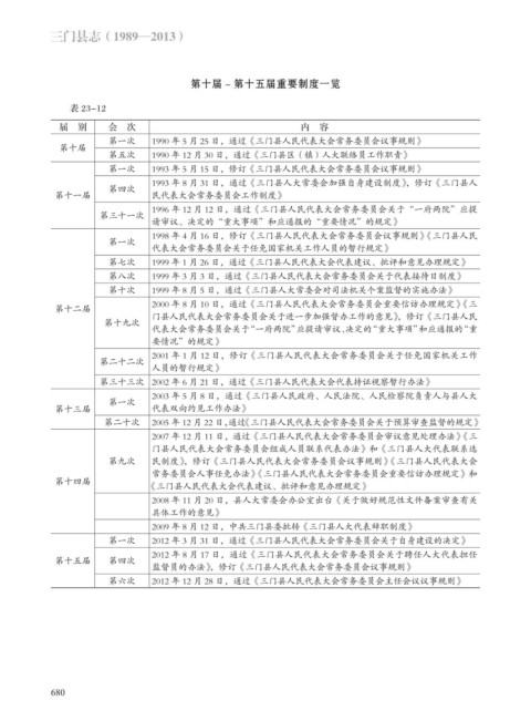第六次 2012 年 12 月 28 日,通过《三门县人民代表大会常务委员会主任会议议事规则》
