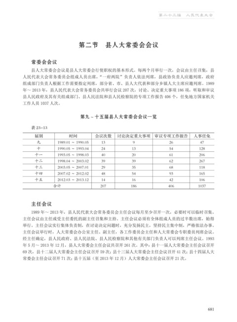 69 次,县十二届人大常委会主任会议召开 59 次;县十三届人大常委会主任会议召开 41 次;县十四届人大