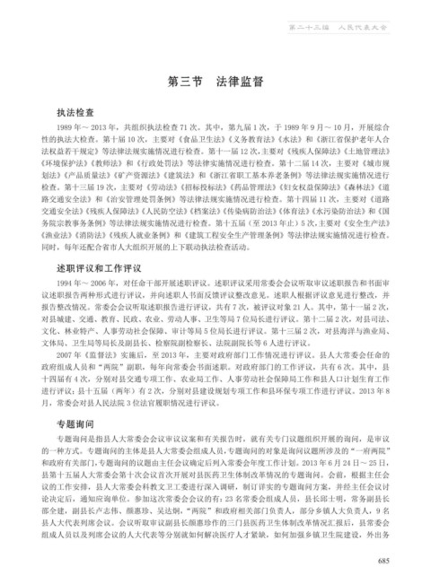 性的执法大检查。第十届 10 次,主要对《食品卫生法》《义务教育法》《水法》和《浙江省保护老年人合