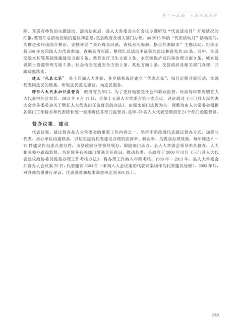 大代表担任监督员。2012 年 8 月 17 日,县第十五届人大常委会第三次会议,讨论通过《三门县人民代表