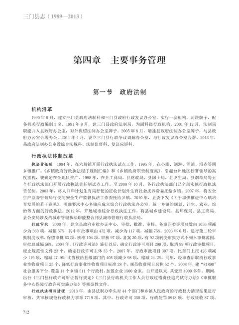 府办公室合署办公。2011 年 4 月,设立三门县行政争议调解办公室,与行政复议办公室合署。2013 年,
