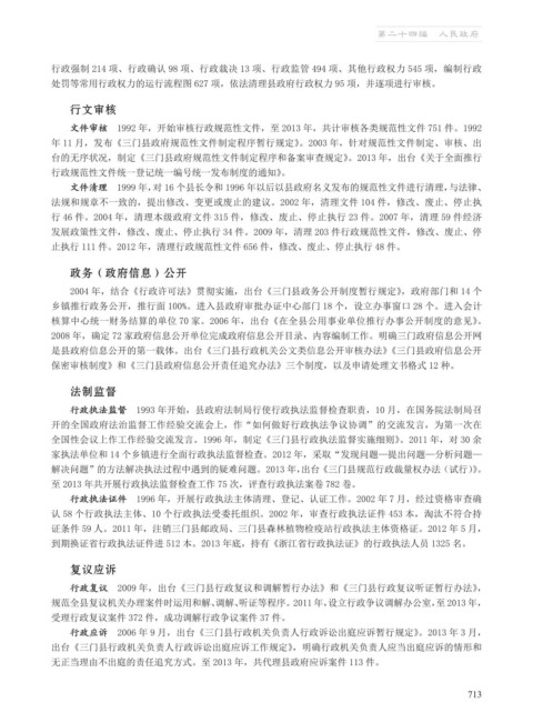 台的无序状况,制定《三门县政府规范性文件制定程序和备案审查规定》。2013 年,出台《关于全面推行