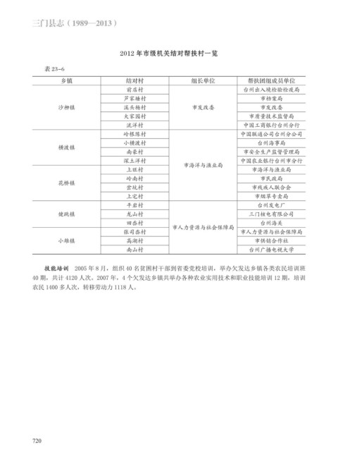 40 期,共计 4120 人次。2007 年,4 个欠发达乡镇共举办各种农业实用技术和职业技能培训 12 期,培训