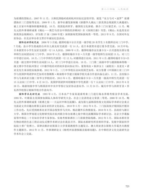 漂海在三门登陆等史实。2009 年 1 月,新华社播发新闻稿《浙籍华人姚沁三获美国总统就职大典邀请》,