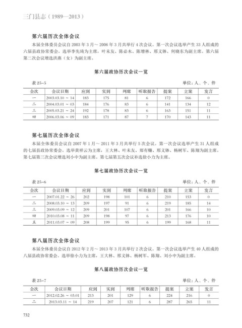 会次 会议日期 应到 实到 列席 听取报告 提案 立案 发言