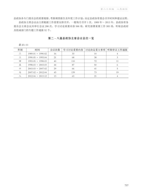 第二~八届县政协主席会议会次一览