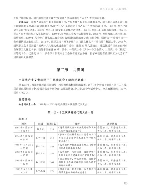 共青团代表大会 1989 年~ 2013 年间共召开 6 次县团代表大会。