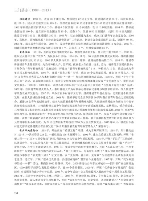 推荐团干部 140 名、优秀团员 380 名。1996 年,以企业团建为重点,成立三门县青年企业家协会。2000