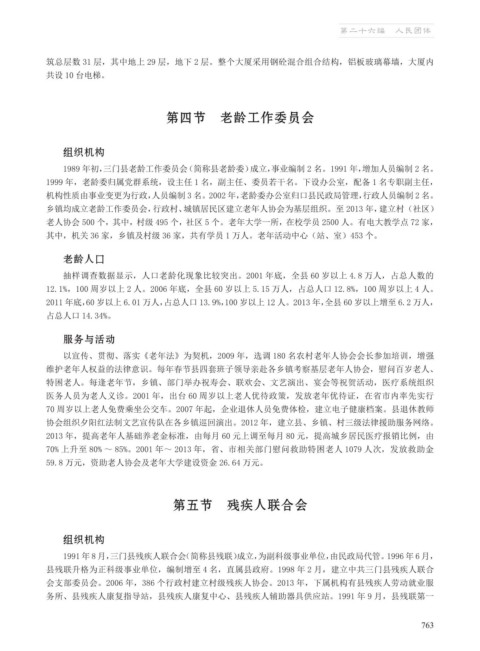 会支部委员会。2006 年,386 个行政村建立村级残疾人协会。2013 年,下属机构有县残疾人劳动就业服