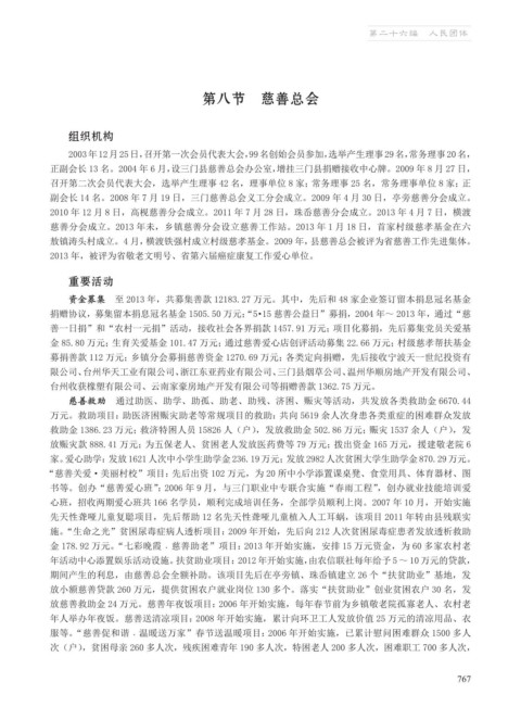 副会长 14 名。2008 年 7 月 19 日,三门慈善总会义工分会成立。2009 年 4 月 30 日,亭旁慈善分会成立。