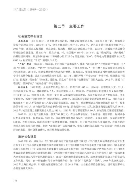 2006 年以来,相继出台《三门县维护稳定工作责任制暂行规定》《三门县党政领导维护稳定工作责