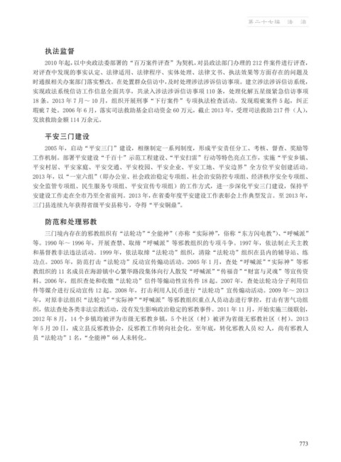 织,依法查处各类非法宗教活动,没有发生影响政治稳定的邪教事件。2011 年 11 月,开始实施三级联创,