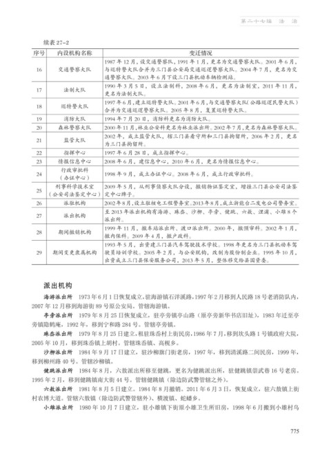 26 派驻机构 2002年8月,设立驻核电工程警务室。2013年8月,成立浙能台二发电公司警务室。