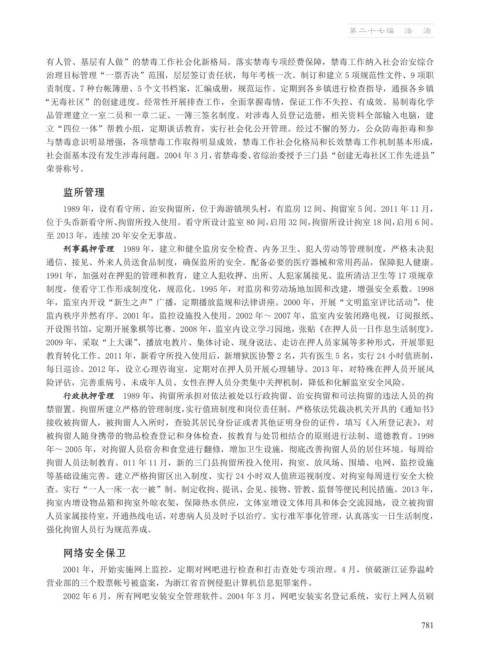 1991 年,加强对在押犯的管理和教育,建立人犯收押、出所、人犯家属接见、监所清洁卫生等 17 项规章