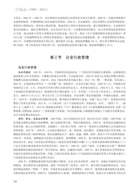 门县公共娱乐服务场所治安管理责任状》。2001 年~ 2004 年,组织“场所、行业整治回头看”“整顿和