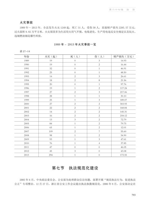 1989 年~ 2013 年,全县发生火灾 1249 起,死亡 31 人,受伤 58 人,直接财产损失 2285.57 万元,
