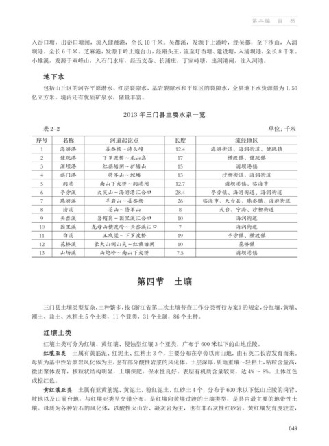 2013 年三门县主要水系一览