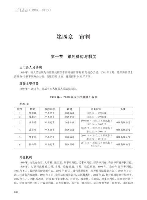 1989 年~ 2013 年,先后有 6 人任县人民法院院长。
