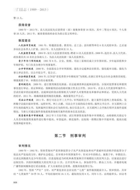 1989 年~ 2013 年,县人民法院先后获得省(部)级集体荣誉 18 项次,其中二等功 6 项次,个人荣