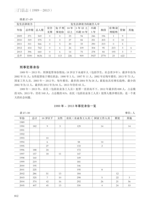的 92%。2013 年,仍有 540 人,占总数的 81%。农民(包括农业务工人员)犯罪人数多增长快,是一个重